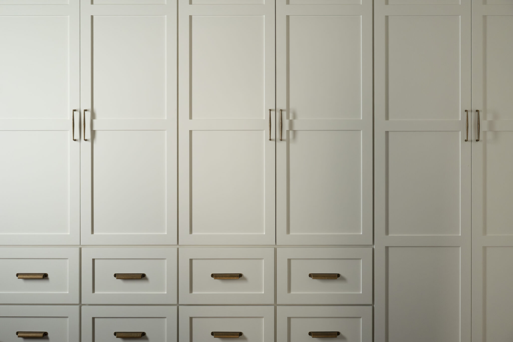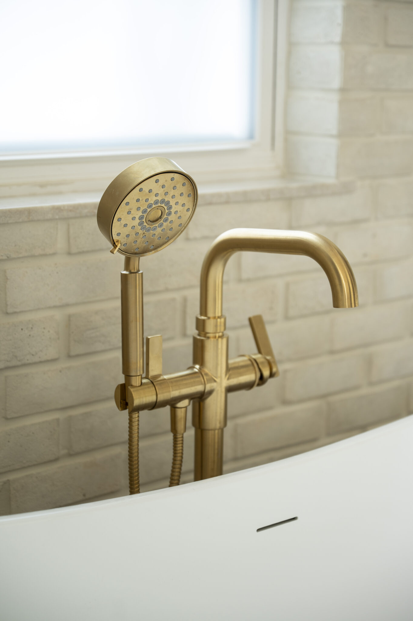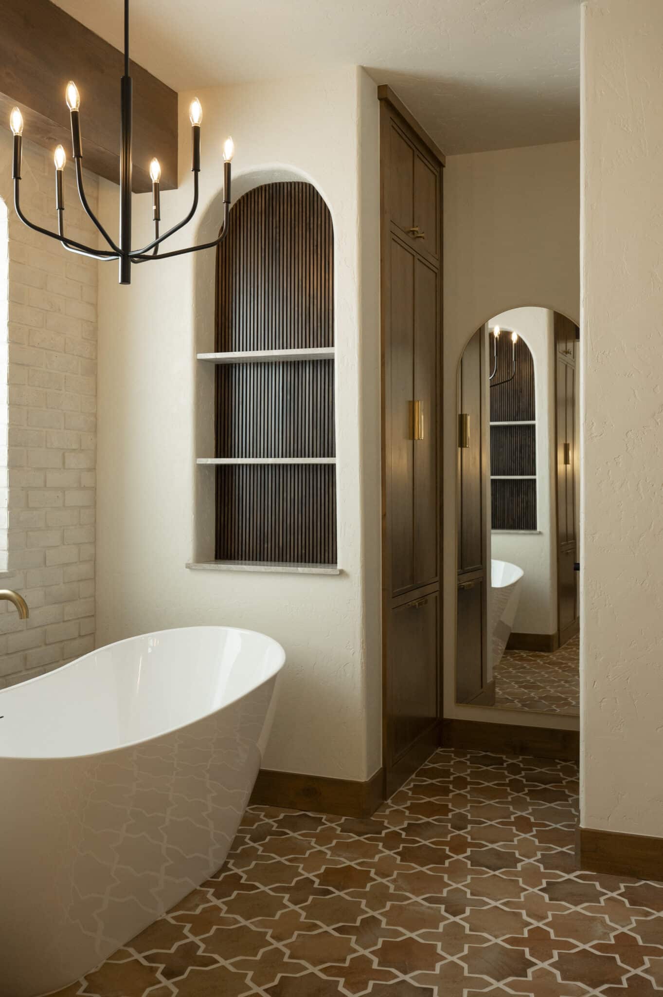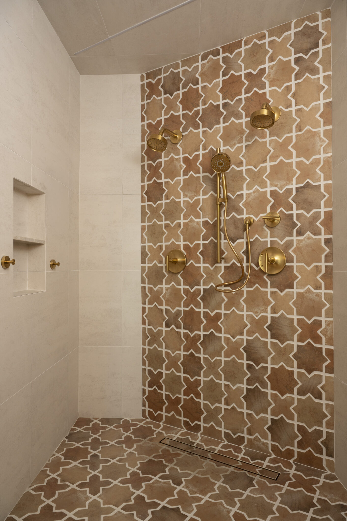 A bathroom designed with intention, where every detail plays a role. Opening up the space by diving into another room allowed for a larger shower and makeup vanity. Taj Mahal stone brings softness and movement, inset cabinetry adds a tailored feel, and warm brass accents tie everything together. Finished with heated porcelain floors for comfort that lasts.